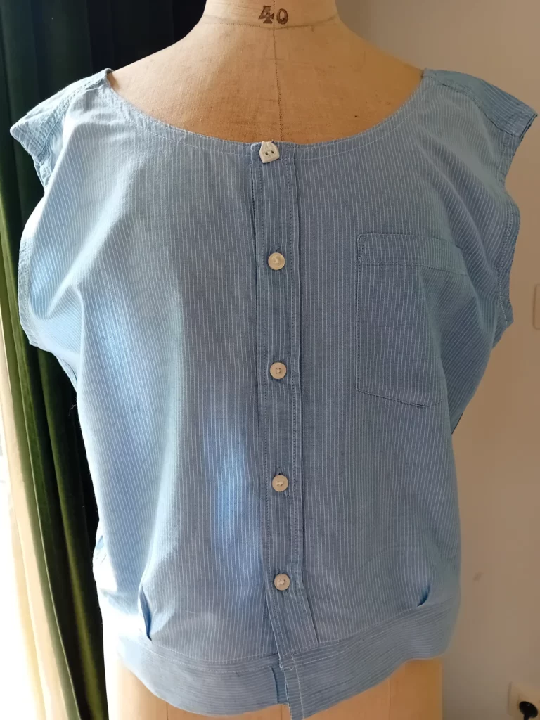 À partir d’une chemise fatiguée, nous allons couper, coudre, ajuster les différentes pièces pour obtenir un top trop stylé!