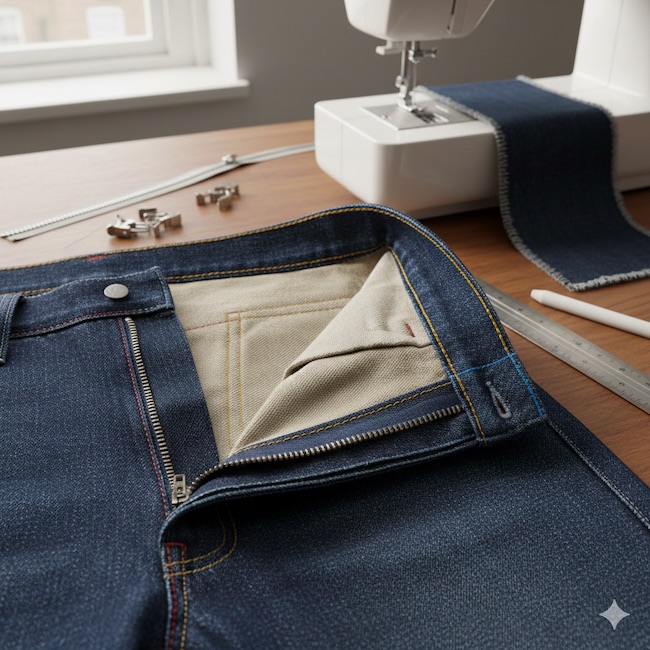 Objectif de l’atelier : Découvrir le montage d’une braguette professionnelle, étape par étape, pour obtenir un zip droit, une sous-patte propre, une surpiqûre régulière et une braguette qui “tombe” bien.