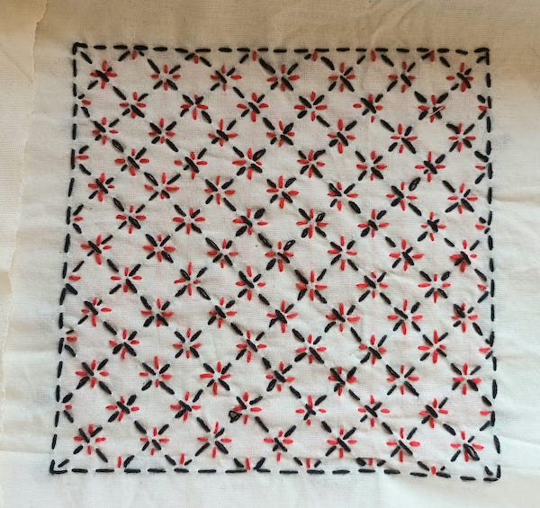 🌸 Plusieurs points et motifs simples de la broderie d’inspiration sashiko, faciles à reproduire chez vous.